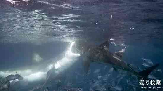 4、攝影師水下捕捉大白鯊?fù)愊鄽埶查g
