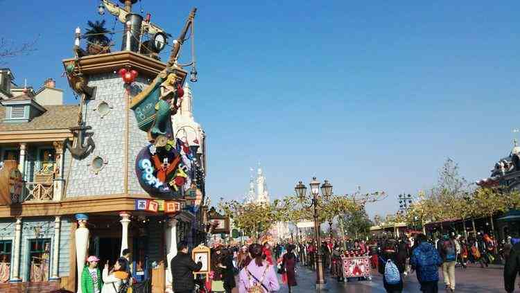 最近幾天上海的空氣真是無比清澈,迪斯尼紅色的牌匾在藍天映襯下分外鮮艷。陽光正好,雖然園內(nèi)人流如織,但外表滄桑內(nèi)心柔軟的我還是被那些童話中的建筑深深打動。在這樣的街道上行走,是不是不小心就會遇到一位睡醒的公主或巡游的王子呢?