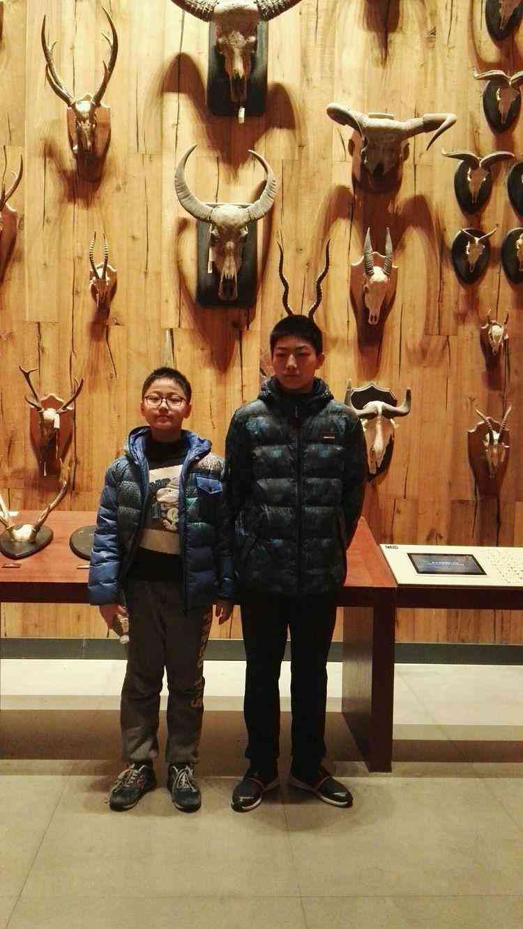 兩個小家伙一路看下去很興奮,尤其在礦石標本前流連忘返。他們各自都有自己的百寶箱,里面是各種化石和礦石,所以對這里的知識也有個一知半解。男孩都不喜歡拍照,尤其在這樣尷尬年齡的男孩子更是如此,好不容易連哄帶騙,他們才在牛頭墻前站定。祝愿兩個小家伙未來都能更牛吧。
