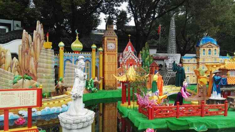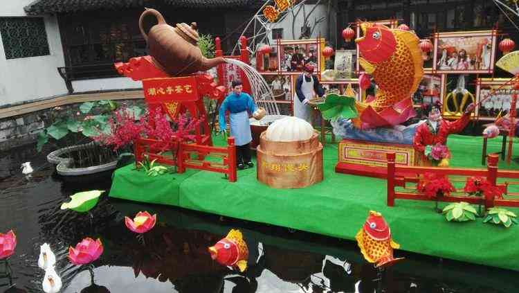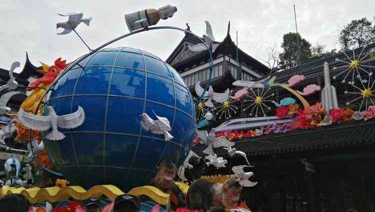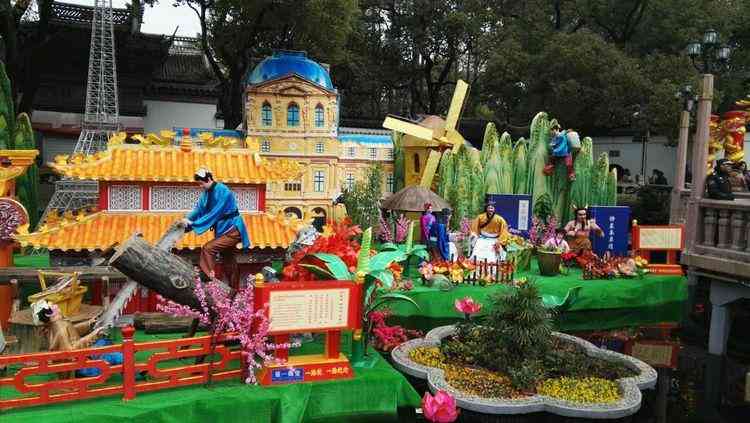 隨著人流走進九曲橋,橋兩旁的河道中展示的幾大組大型場景類花燈。中外美景,古今名人,里弄日常,難得的是花燈也能做得如此細膩逼真。過年就是要這樣桃紅柳綠、熱鬧歡喜吧。這才是我們中國特有的年味。
