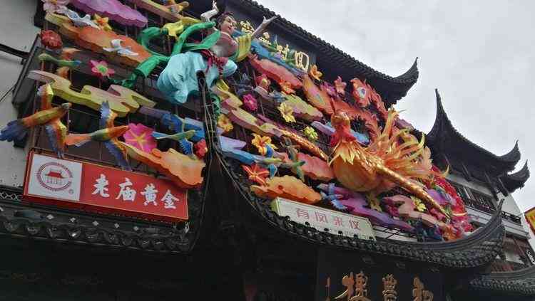剛出地鐵口,果真是人山人海,警察們?nèi)揭粛徫宀揭簧?,儼然已?jīng)嚴陣以待。原來豫園是黃金制品集散地,老廟老鳳祥亞一珠寶,各類商鋪玲瑯滿目珠光寶氣。節(jié)前的城隍廟已經(jīng)被裝點一新,有的描金畫銀,有的花團錦簇,還有的是國學瑰寶,總之無所不用其極。