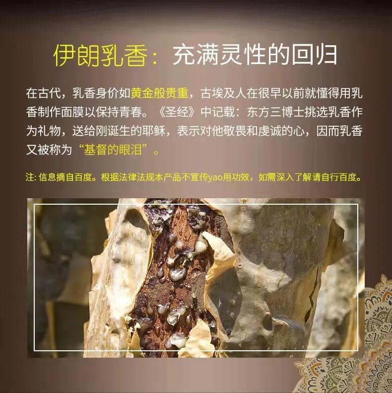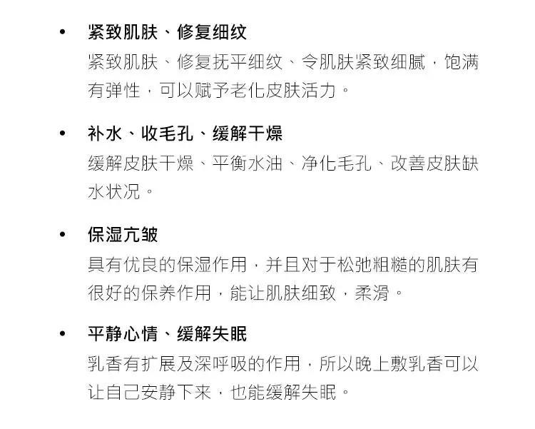 大家應該聽說過,乳香具有抗老抗氧化的功效,所以這款純露可以淡化干紋細紋、緊致肌膚收縮毛孔、補水保濕細膩肌膚等功效,有效的改善肌膚的松弛。它的滲透力強,屬于小分子,能真正的被皮膚所吸收,發(fā)揮它最大的功效。