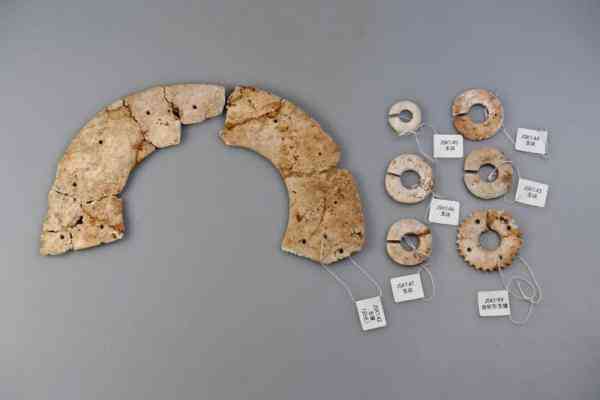 出土的最大玉璜及玉玦、齒輪形玉璧。徐旻昊 攝
