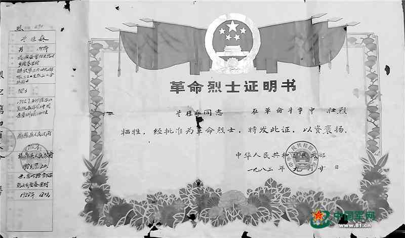 當(dāng)年頒發(fā)給蘭桂森家人的烈士證書。
