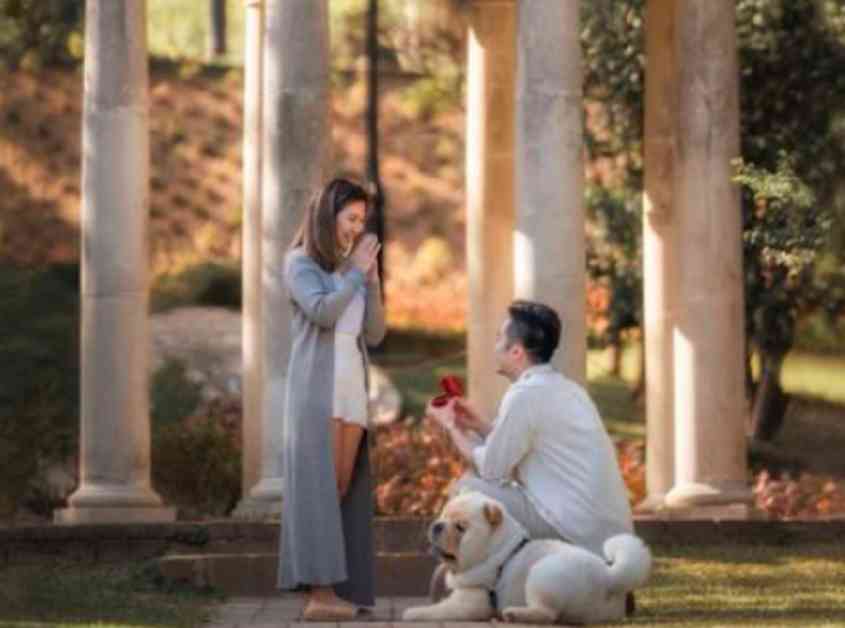 媒體曬出了兩張圖,其中一張是羅欣儀男友在山頂求婚的照片,當(dāng)天兩人一起去山頂遛狗,誰(shuí)知男友突然跪地送上鉆戒。