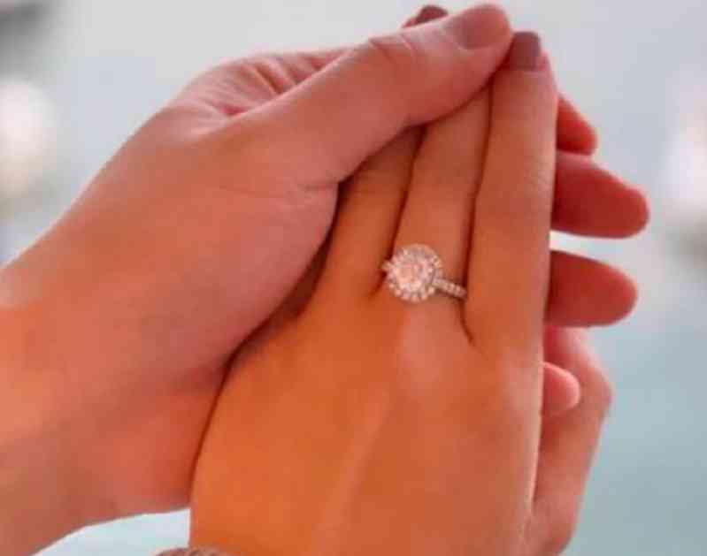 另外還有一張鉆戒圖,羅欣儀的中指戴著一枚猶如鴿子蛋般大的鉆戒,鉆石閃閃發(fā)光,而男友就輕握住她的手,畫面溫馨。