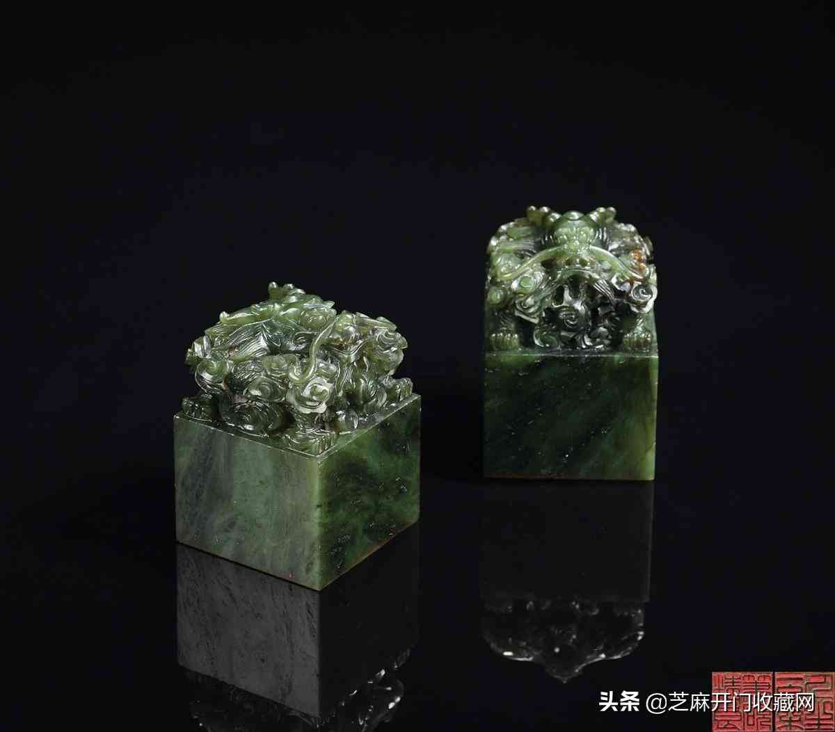 清乾隆-嘉慶碧玉云龍紐方璽(一對(duì)),尺寸:5.9×4×4厘米,估價(jià):RMB 2,500,000,成交價(jià): RMB 2,300,000