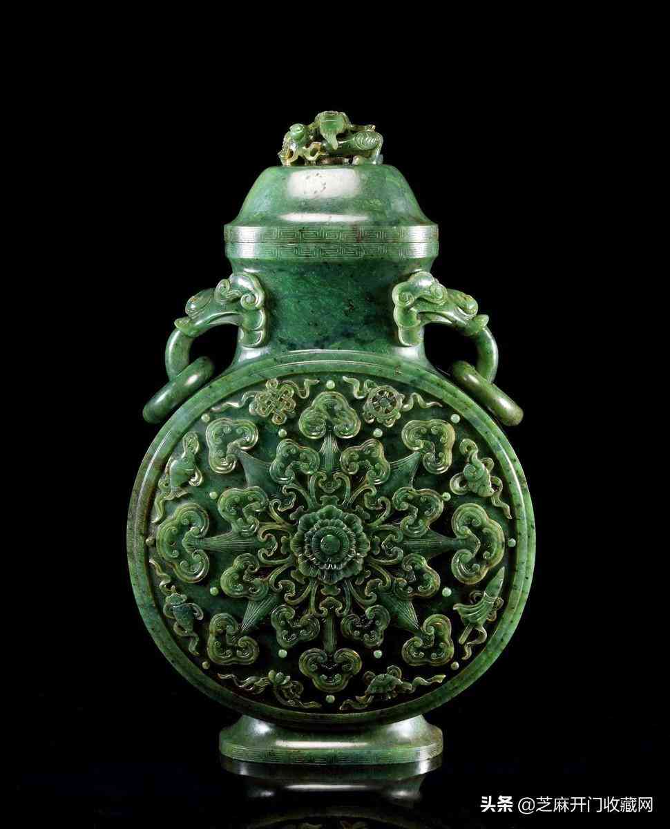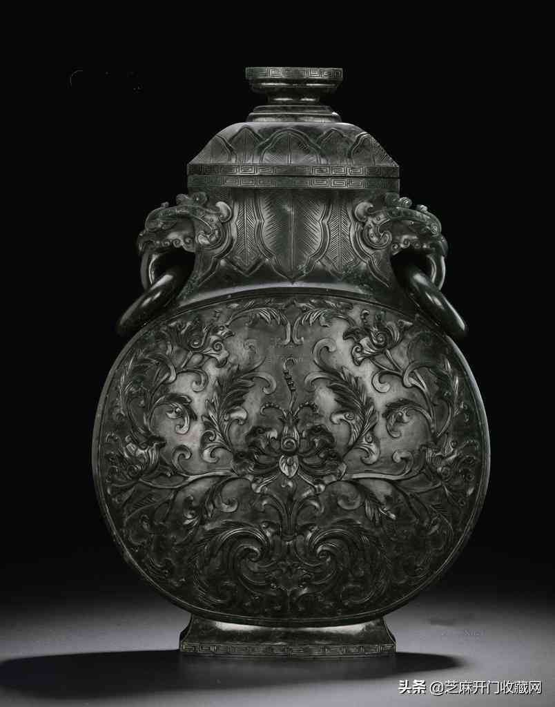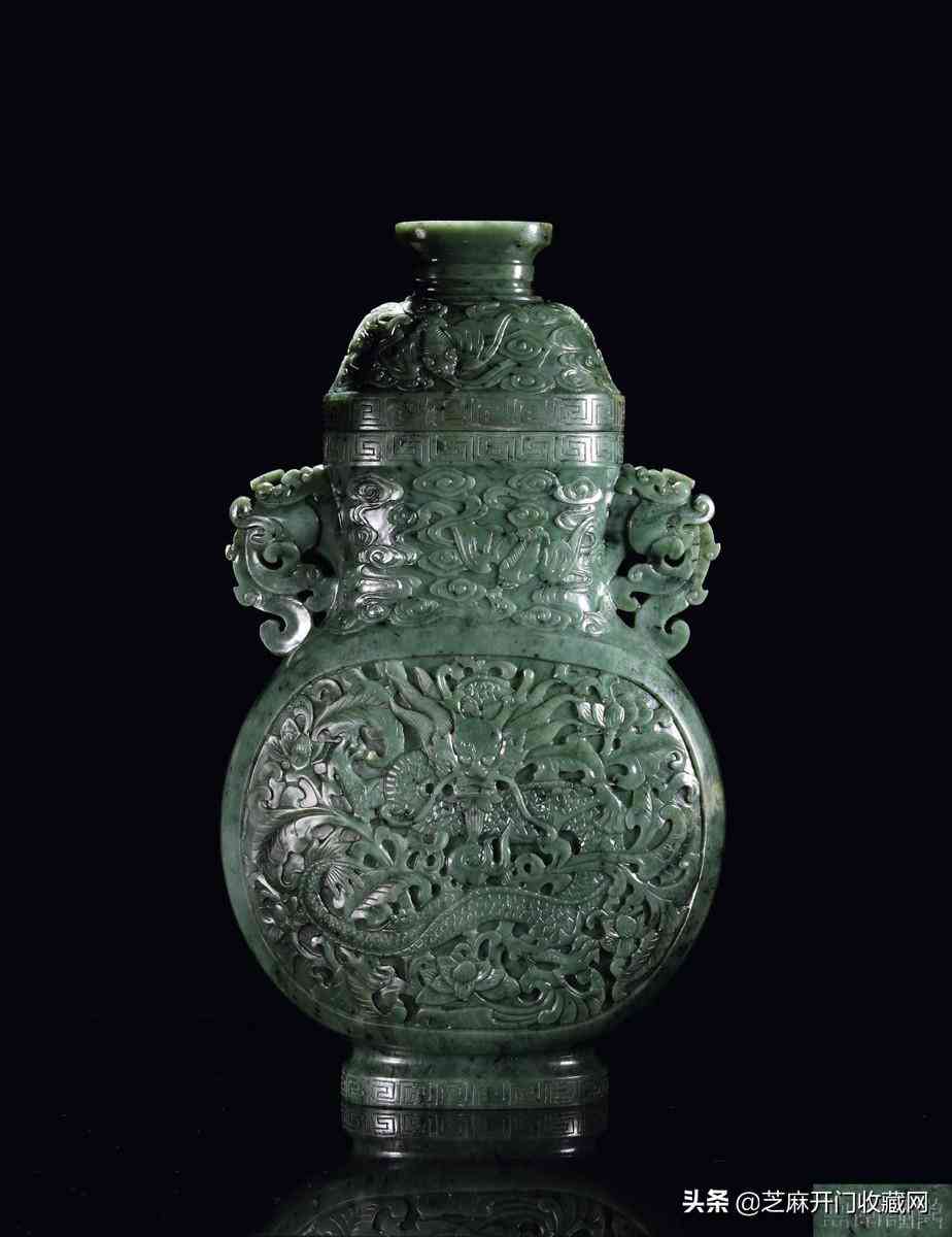 清乾隆御制碧玉蹲龍鈕八吉祥西番蓮抱月瓶,尺寸:高30.5厘米,成交價(jià): RMB 1,725,000