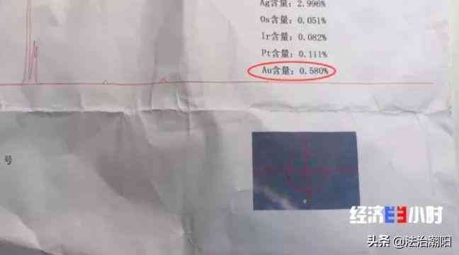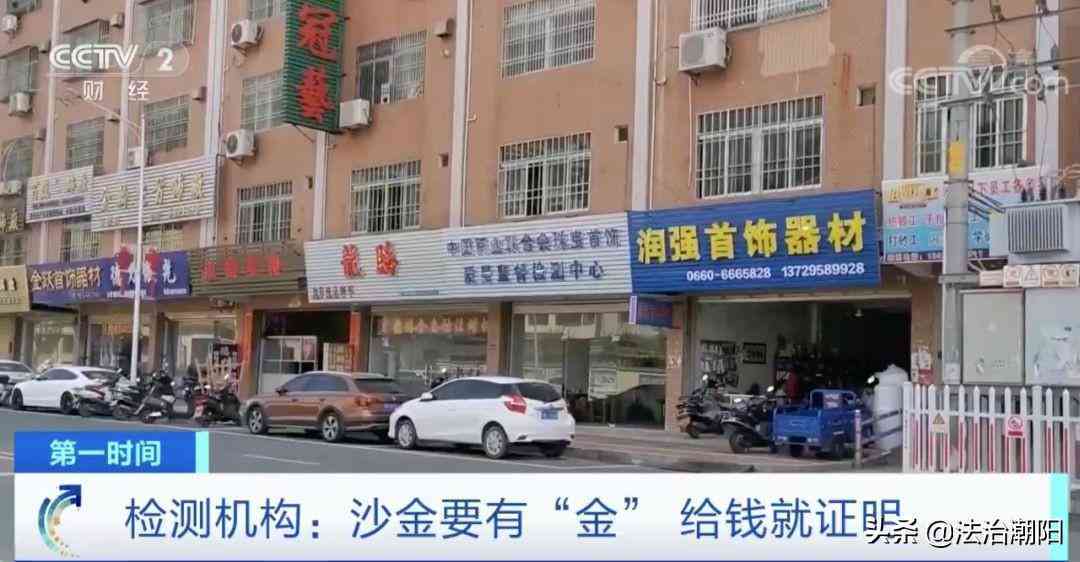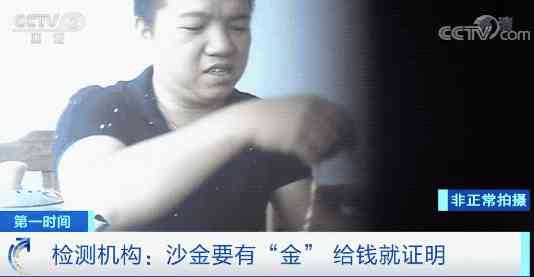 記者帶著購買的多款不同類型的“沙金”首飾,來到梅隴鎮(zhèn)另一家名為“中質(zhì)信誠”的珠寶檢測中心進行檢測。經(jīng)過檢測,原來這些所謂的“沙金”,金的含量分別為0.58%和0.48%,金的含量微乎其微,幾乎可以忽略。