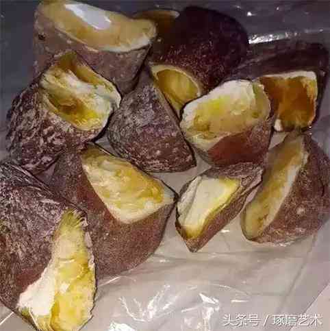 學名叫聚亞胺膠脂,是挖礦時用來填補縫隙的膠,下面這些馬力散表皮處理的比較光滑,多為鵝卵形,肉色多為夸張的雞油黃,地攤上一抓一大把!