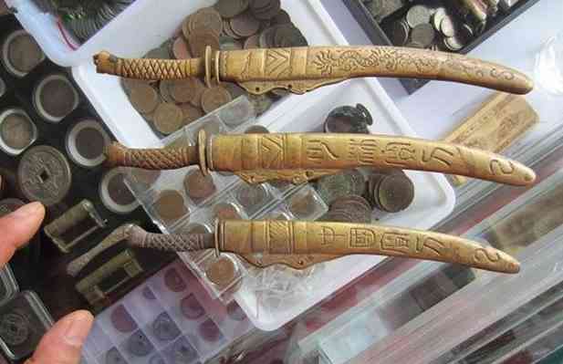 而經年的各種擺設物大部分都被人們賦予了各種各樣意義,比如辟邪、鎮(zhèn)宅什么的。清代辟邪銅刀就是這一類。