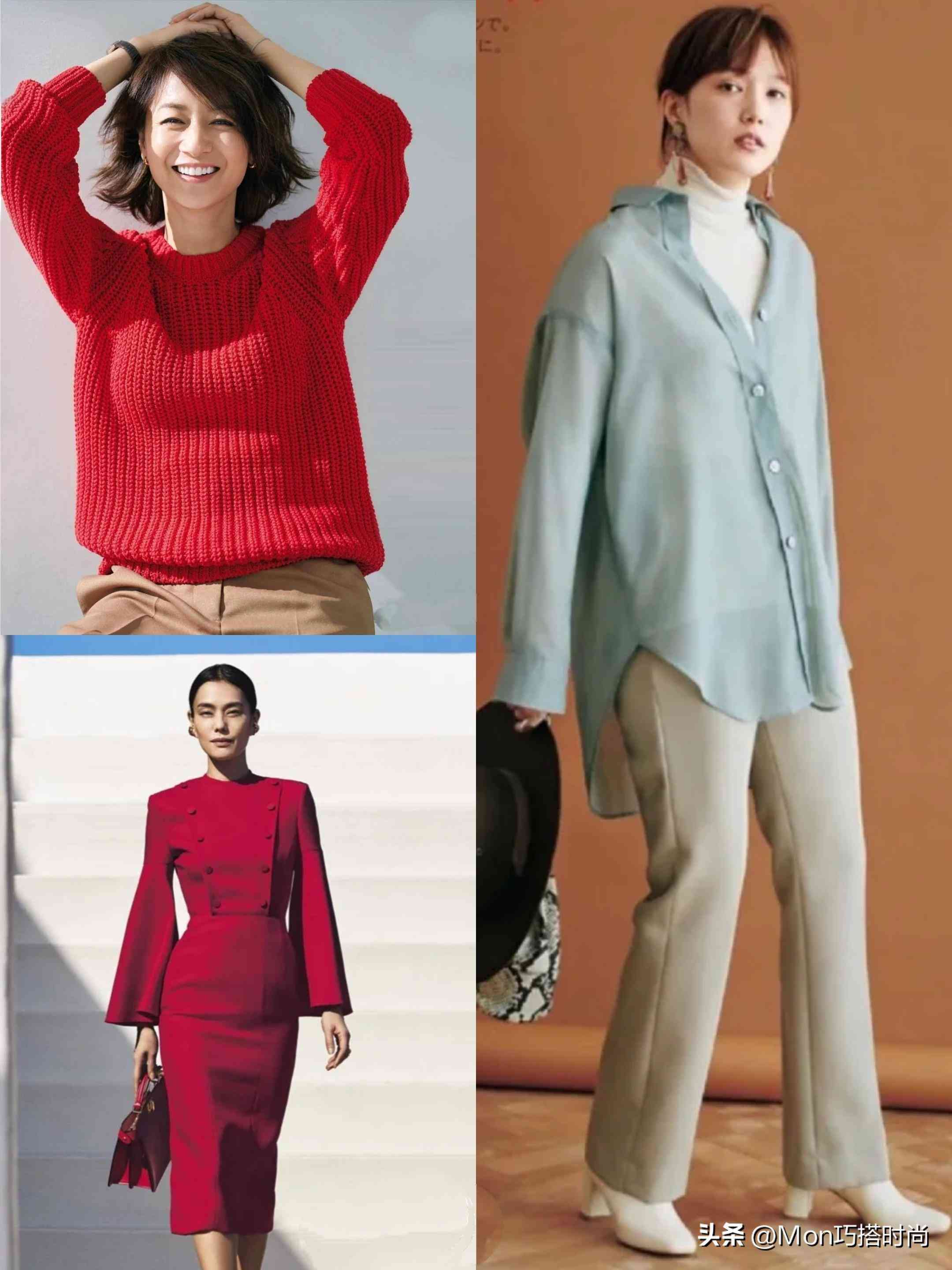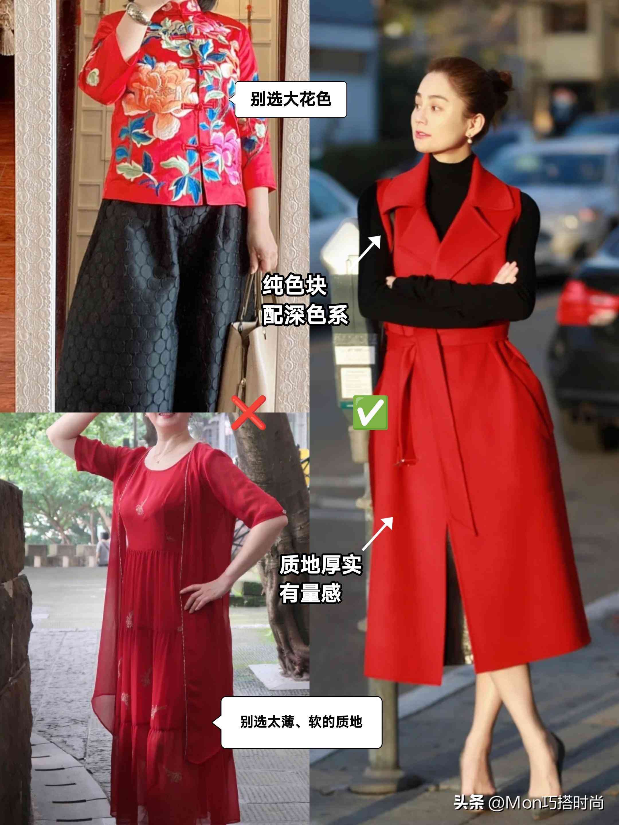 正紅色服裝選擇質(zhì)地厚實(shí)有量感,剪裁簡約才有格調(diào)。配上深棕、深藍(lán)、黑色等深色單品,四五十歲也能貌美如花~