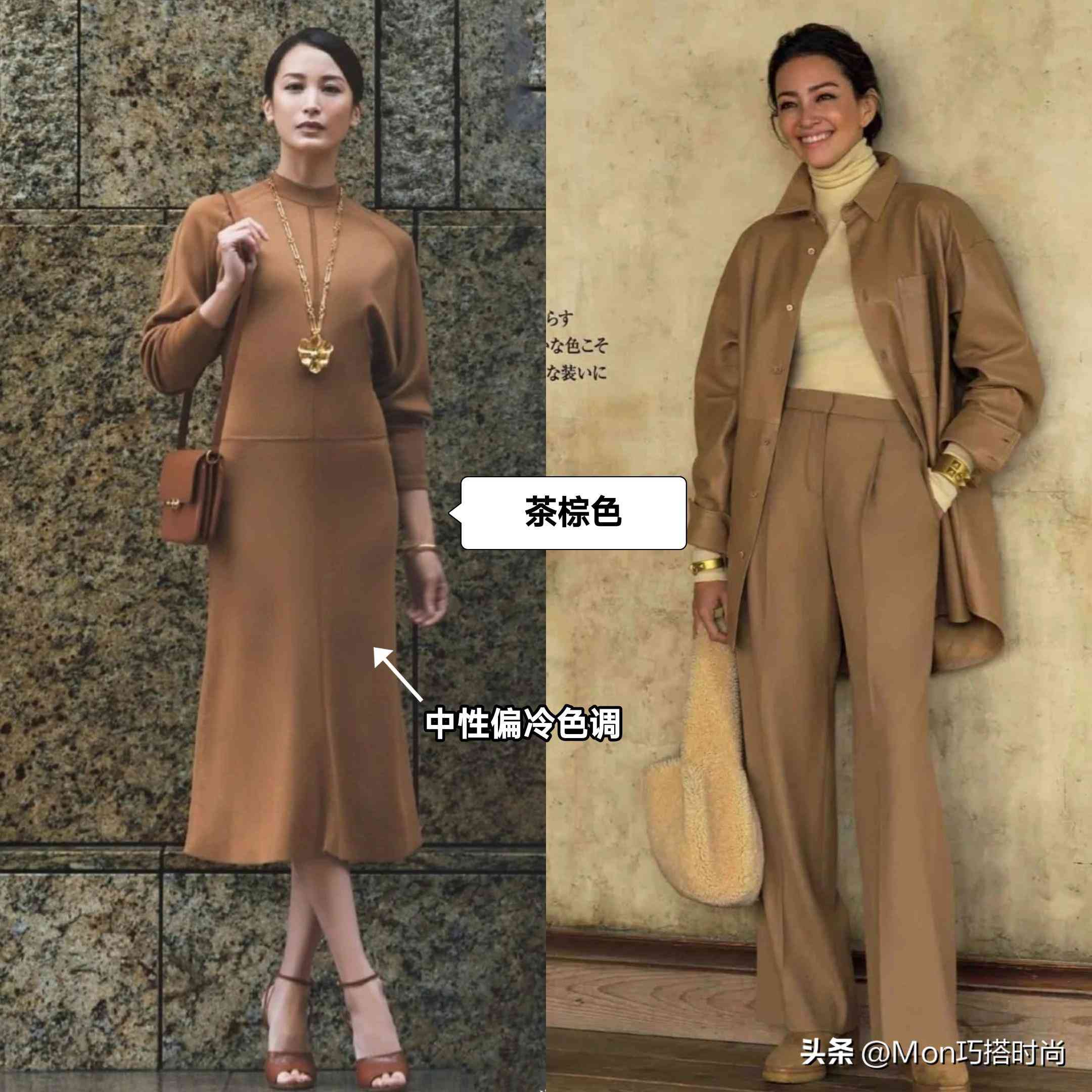 茶棕色偏褐色調(diào),整體中性偏冷,穿起來端莊大氣,極富質(zhì)感,還帶著幾分清冷的禪意和書卷氣,最適合喜愛氣質(zhì)風(fēng)路線的姐妹。