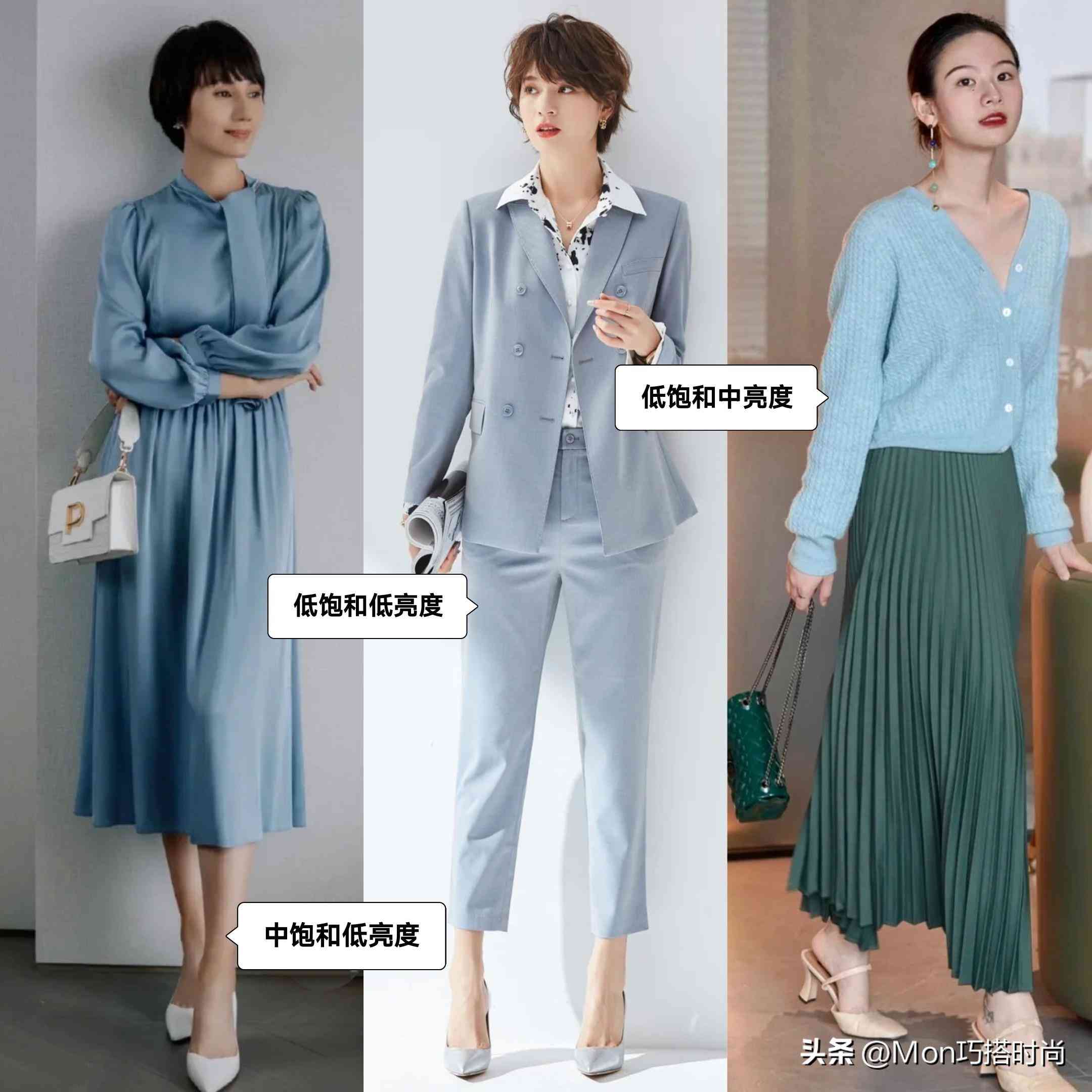 中飽和低亮度藍(lán)色低調(diào)內(nèi)斂,更加沉穩(wěn)。低飽和和低亮度清純氣質(zhì),用在正裝、職場單品上最顯年輕。低飽和中亮度藍(lán)色活潑靚麗,配深色服裝時(shí)髦又優(yōu)雅。
