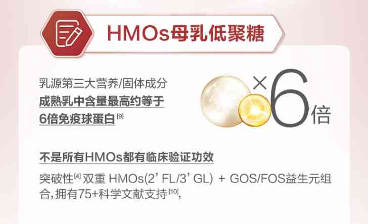 兩款奶粉的區(qū)別就在于HMO母乳低聚糖的添加,HMO具有益生元功能,能促進益生菌的生長,同時也抑制有害菌的生長,HMO還能支持免疫系統(tǒng)發(fā)育和調節(jié)。