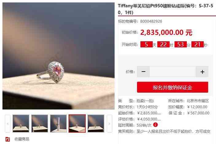 北京一中院司法拍賣-蒂芙尼鉑Pt950鑲粉鉆戒指(S-37-50)_騰訊視頻