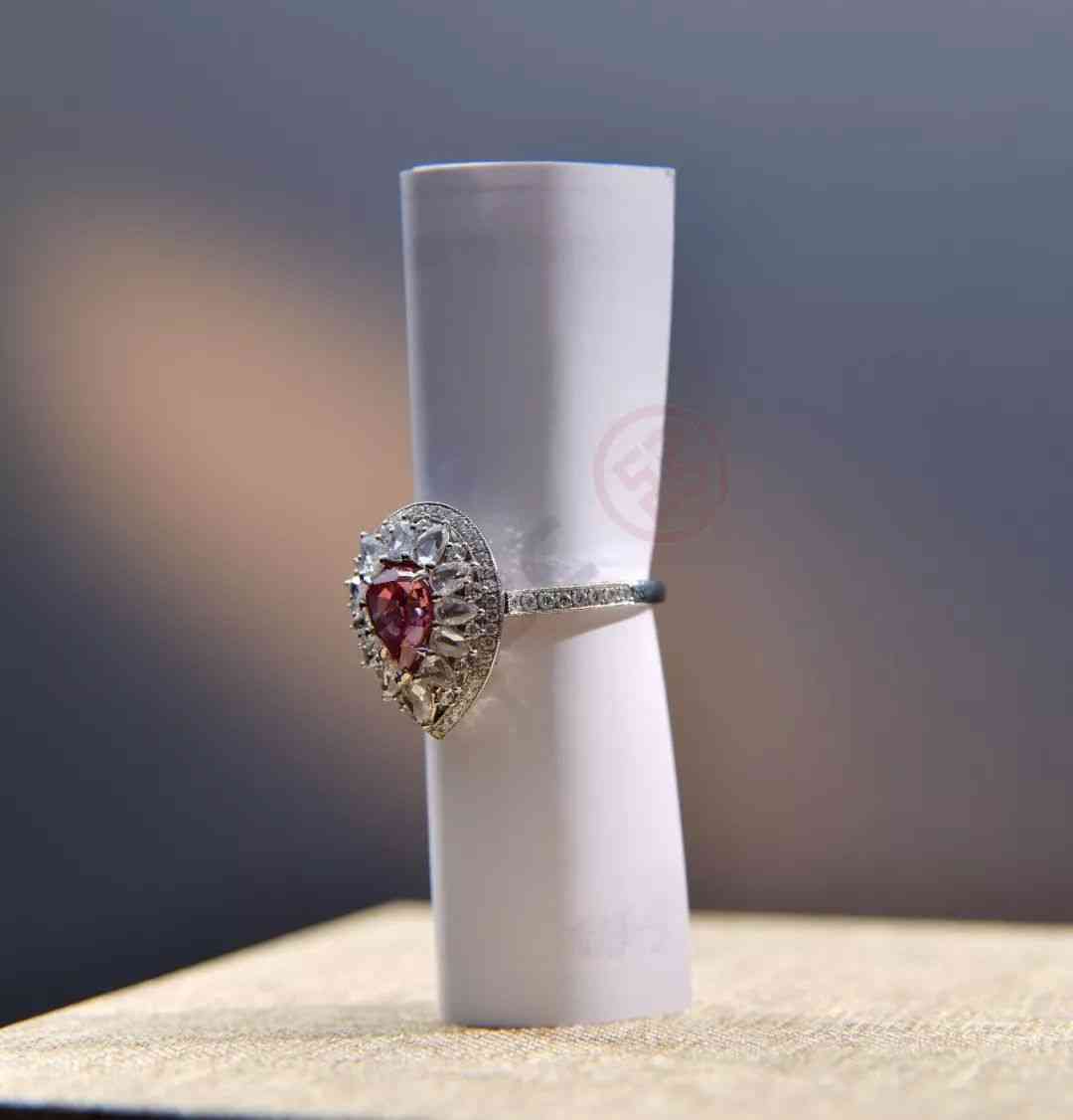 商品描述:主石為水滴形粉鉆,1.32克拉,顏色為Fancy Intense Brownish Pink色,凈度為VVS級(jí),藍(lán)色強(qiáng)熒光,切工較好。鑲白色水滴形配鉆,顏色為H色,凈度為VVS級(jí),花形外圍一圈鉆石,未封底,底部花式造型,16號(hào)戒圈,大小可改。(小編真是操碎了心。。。)