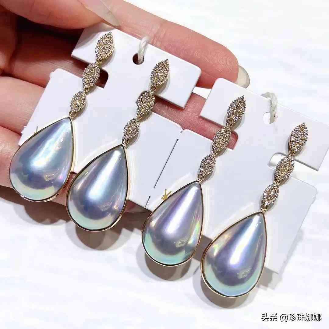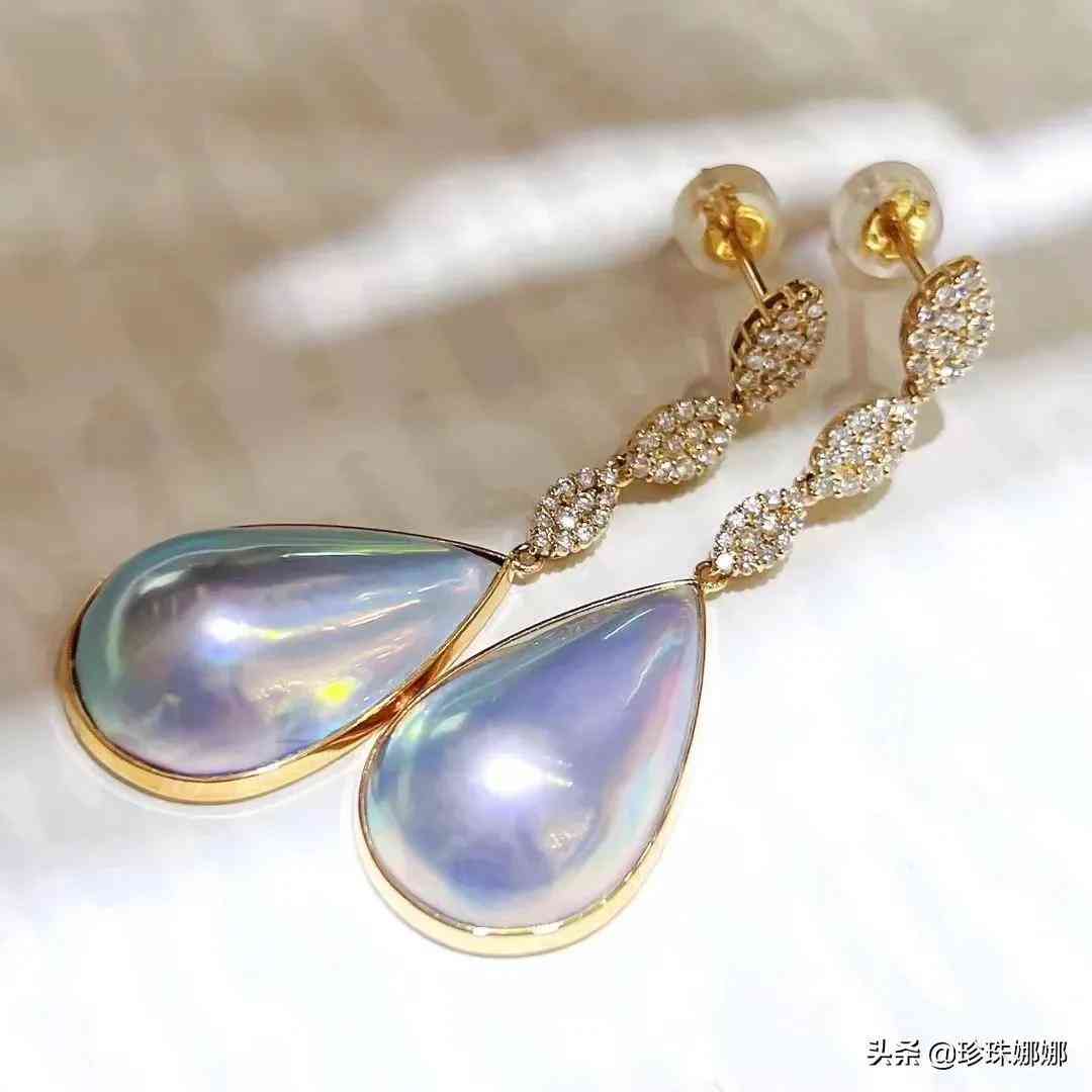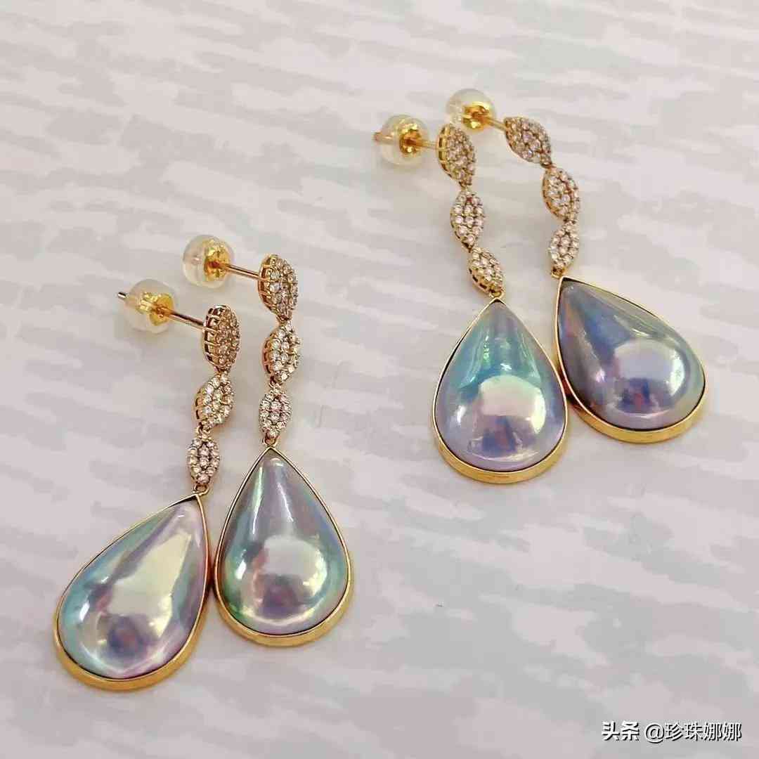 新款日本工馬貝耳環(huán) 大尺寸水滴馬貝 整體看起來就是莫名得精致細(xì)致水滴藍(lán)馬貝 特別修飾臉型 馬貝尺寸14*21.5MM 表皮細(xì)膩光滑 輕微生長紋 極光炫彩 18K金鉆石0.46ct