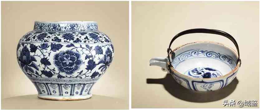 左 纏枝牡丹罐 右 蓮池紋匜
