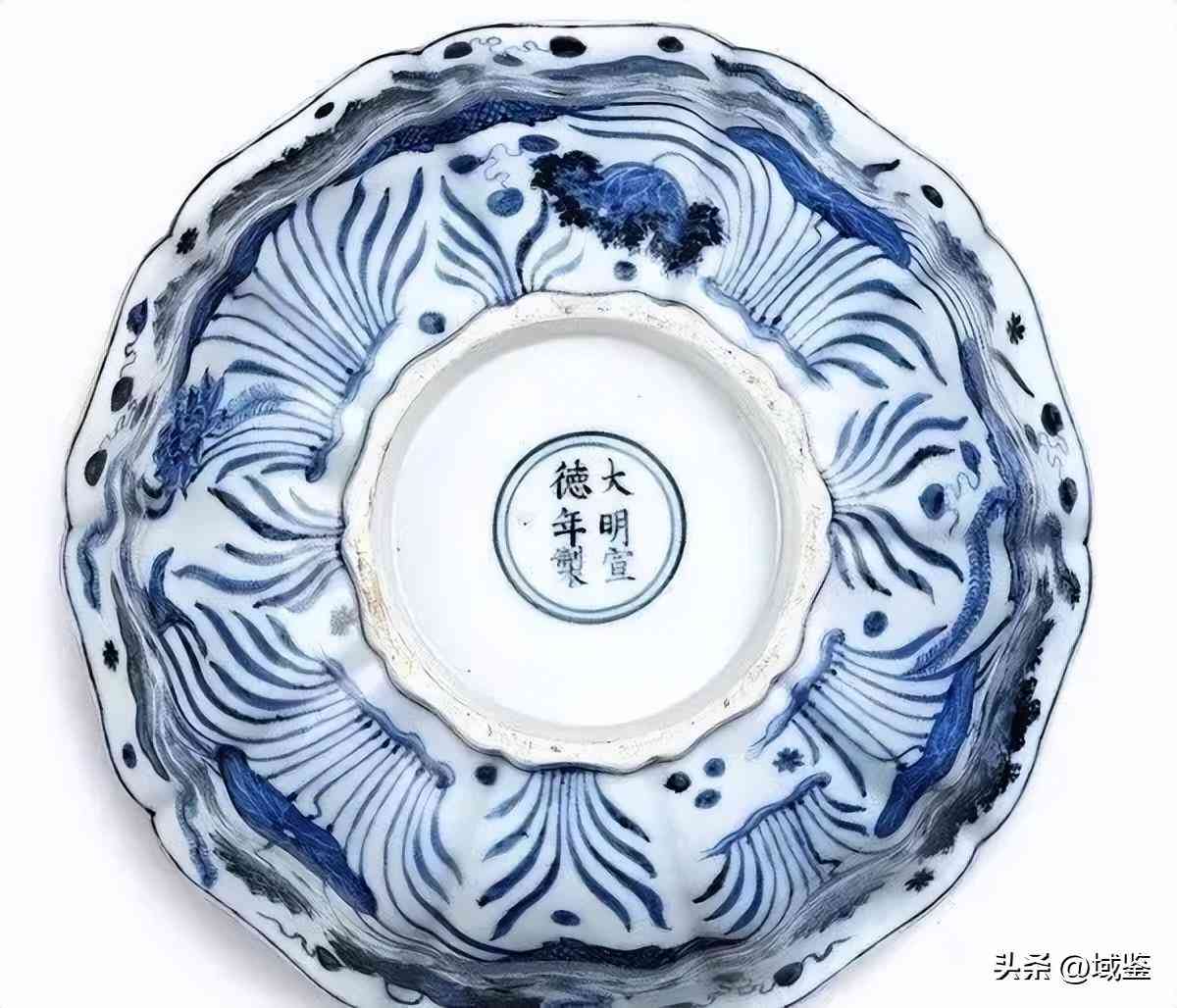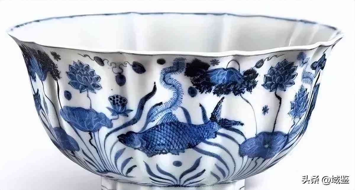 明宣德 青花魚(yú)藻紋十棱菱口大盌