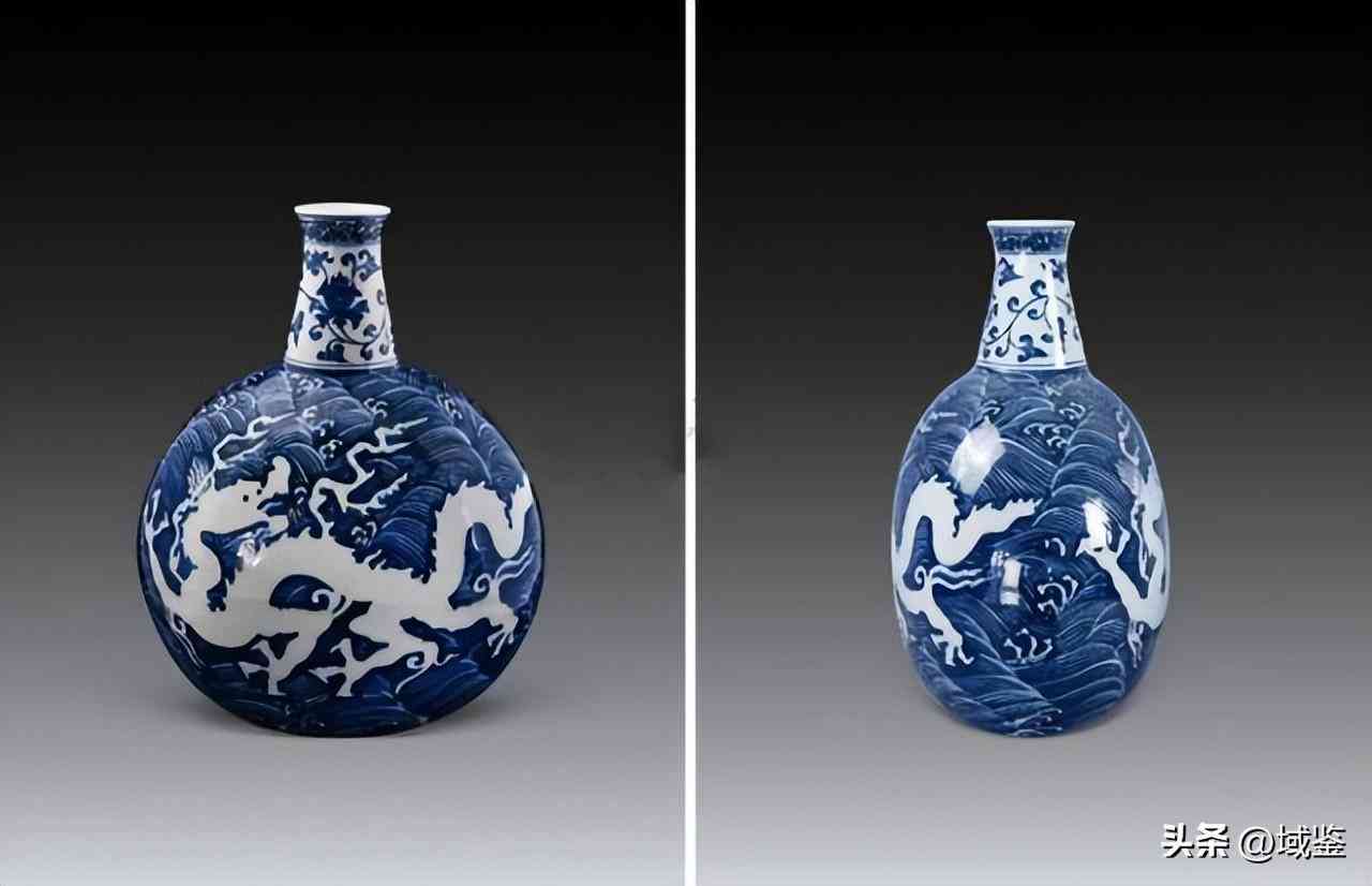 明宣德青花海水白龍紋扁瓶