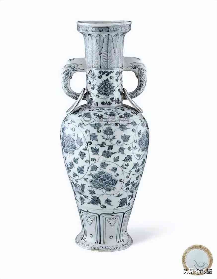 明洪武青花纏枝牡丹紋龍耳瓶