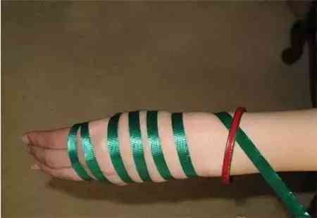 2、從手指捆起,捆到手碗鐲子的地方,單層,關(guān)鍵地方一定要密。