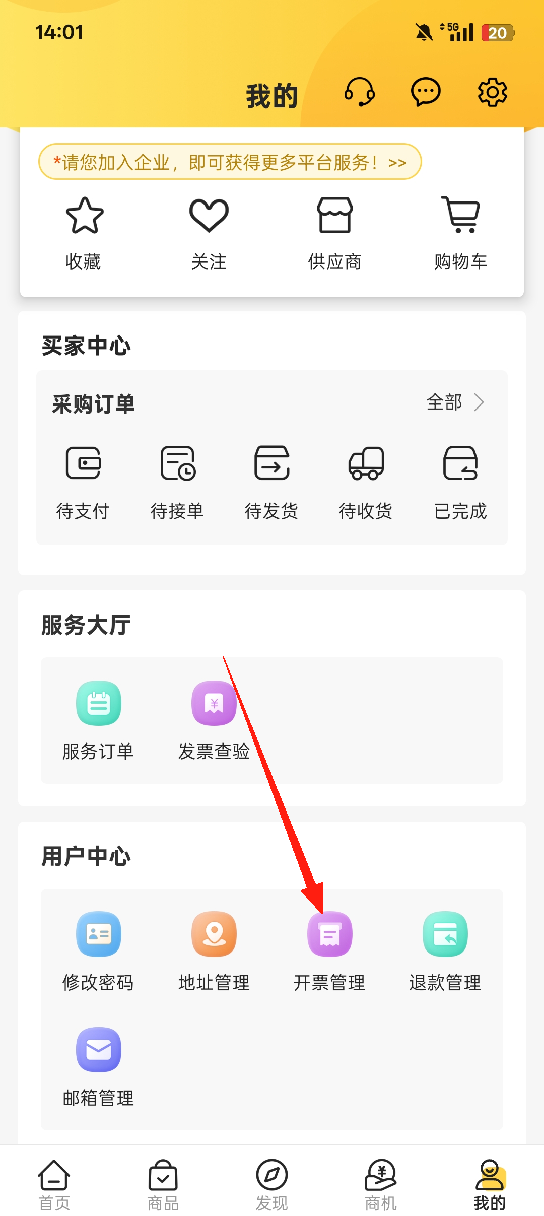 1、在平臺(tái)上購(gòu)買完物品之后,可以線上直接開(kāi)發(fā)票,點(diǎn)擊底部“我的”;