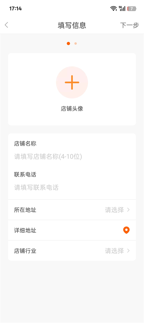 5、填寫店鋪名稱、練習電話、所在地址、詳細地址、店鋪行業(yè)等信息,還有店鋪頭像,接著根據(jù)要求上傳資料驗證,最后等待審核即可。