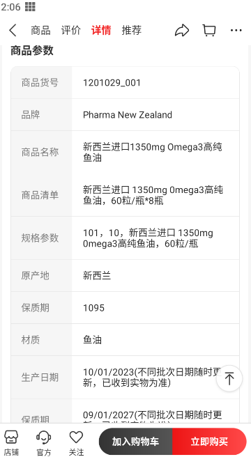 4、也可以直接進(jìn)入商品詳情頁中,查看商品的參數(shù)、評(píng)價(jià)、詳情等;