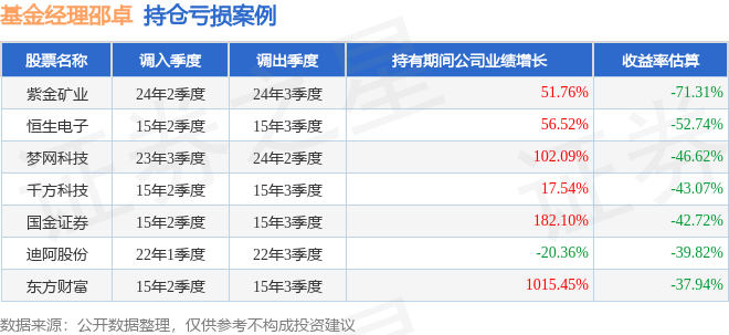 重倉股調(diào)倉示例詳解:   1、陽光電源(300274)翻倍案例:   邵卓管理的建信信息產(chǎn)業(yè)股票A基金在20年2季度買入陽光電源,在持有3個(gè)季度后在21年1季度賣出。持有期間的估算收益率為657.43%,持有期間陽光電源在2020年到2021年的年報(bào)營業(yè)總收入增幅達(dá)25.15%。   2、綠的諧波(688017)調(diào)倉案例:   邵卓管理的建信中小盤先鋒股票A基金在20年3季度買入綠的諧波,在持有1年又0個(gè)季度后在21年3季度賣出。持有期間的估算收益率為96.68%,持有期間綠的諧波在2020年到2021年的年報(bào)歸屬凈利潤增幅達(dá)130.56%。   3、紫金礦業(yè)(601899)折戟案例:   邵卓管理的建信創(chuàng)新中國混合基金在24年2季度買入紫金礦業(yè),在持有1個(gè)季度后在24年3季度賣出。持有期間的估算收益率為-71.31%,持有期間紫金礦業(yè)在2023年到2024年的年報(bào)歸屬凈利潤增幅達(dá)51.76%。