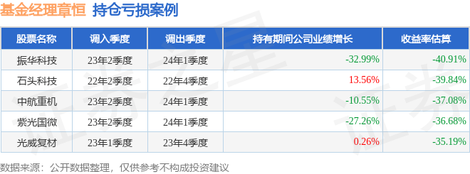 重倉股調倉示例詳解:   1、三七互娛(002555)翻倍案例:   章恒管理的萬家行業(yè)優(yōu)選LOF基金在15年1季度買入三七互娛,在持有1個季度后在15年2季度賣出。持有期間的估算收益率為179.86%,持有期間三七互娛在2014年到2015年的年報歸屬凈利潤增幅達1224.18%。   2、二三四五(002195)調倉案例:   章恒管理的萬家精選混合A基金在14年4季度買入二三四五,在持有1個季度后在15年1季度賣出。持有期間的估算收益率為94.38%,持有期間二三四五在2014年到2015年的年報歸屬凈利潤增幅達252.38%。   3、振華科技(000733)調倉案例:   章恒管理的萬家雙利債券A基金在23年2季度買入振華科技,在持有3個季度后在24年1季度賣出。持有期間的估算收益率為-40.91%,持有期間振華科技在2023年到2024年的年報營業(yè)總收入降幅為32.99%。