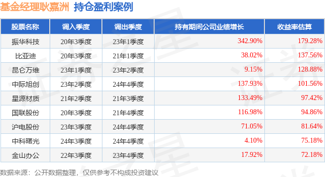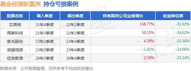 重倉股調(diào)倉示例詳解:   1、振華科技(000733)翻倍案例:   耿嘉洲管理的萬家人工智能混合A基金在20年3季度買入振華科技,在持有2年又2個季度后在23年1季度賣出。持有期間的估算收益率為179.28%,持有期間振華科技在2020年到2023年的年報歸屬凈利潤增幅達(dá)342.9%。   2、星源材質(zhì)(300568)調(diào)倉案例:   耿嘉洲管理的萬家人工智能混合A基金在21年2季度買入星源材質(zhì),在持有1個季度后在21年3季度賣出。持有期間的估算收益率為97.42%,持有期間星源材質(zhì)在2020年到2021年的年報歸屬凈利潤增幅達(dá)133.49%。   3、芯源微(688037)調(diào)倉案例:   耿嘉洲管理的萬家人工智能混合A基金在21年4季度買入芯源微,在持有2個季度后在22年2季度賣出。持有期間的估算收益率為-35.92%,持有期間芯源微在2021年到2022年的年報歸屬凈利潤增幅達(dá)158.77%。