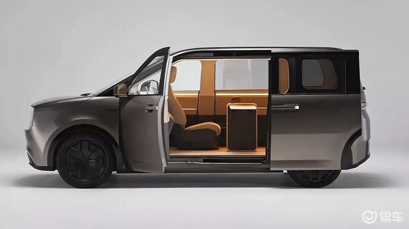 從側(cè)面的官圖能夠看到,夏普LDK+概念車采用了無B柱設(shè)計,相信為確保安全性,新車在A柱及門檻梁等位置將進(jìn)行針對性的結(jié)構(gòu)加強(qiáng)。透過車門能夠看到,新車前排座椅能夠支持至少180°轉(zhuǎn)動,前后排座椅中央還加入了置物茶幾,來增加實(shí)用性。
