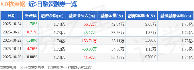 XD杭蕭鋼融資融券信息顯示,融資方面,當(dāng)日融資買入1305.4萬元,融資償還1248.68萬元,融資凈買入56.72萬元。融券方面,融券賣出9.56萬股,融券償還4800.0股,融券余量42.84萬股,融券余額118.24萬元。融資融券余額1.75億元。