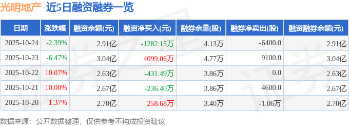 證券之星消息,截至2025年10月24日收盤,光明地產(chǎn)(600708)報(bào)收于4.09元,下跌2.39%,換手率4.41%,成交量98.2萬(wàn)手,成交額4.09億元。