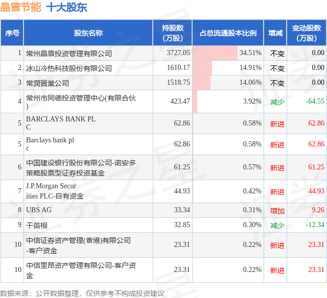 根據(jù)晶雪節(jié)能2025年中報公布的十大股東詳情如下: