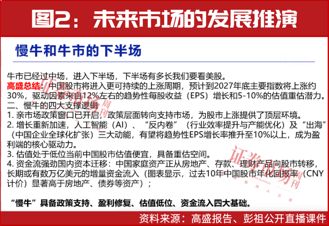 10月22日,高盛發(fā)布研報《中國股市“慢牛”正在形成》。報告核心信號是,中國股市的投資邏輯正在發(fā)生根本性轉(zhuǎn)變,市場已進入一個更持久、波動性更低的“慢?!彪A段。分析師Kinger Lau等預測,在盈利增長和估值修復的雙重驅(qū)動下,到2027年底,包括A股和H股在內(nèi)的中國關鍵股指有約30%的上漲潛力。這一樂觀看法建立在四大支柱之上:友好的政策環(huán)境、盈利增長再加速(由AI、“反內(nèi)卷”和企業(yè)“出?!彬?qū)動)、相對便宜的估值以及強勁的國內(nèi)外資金流。