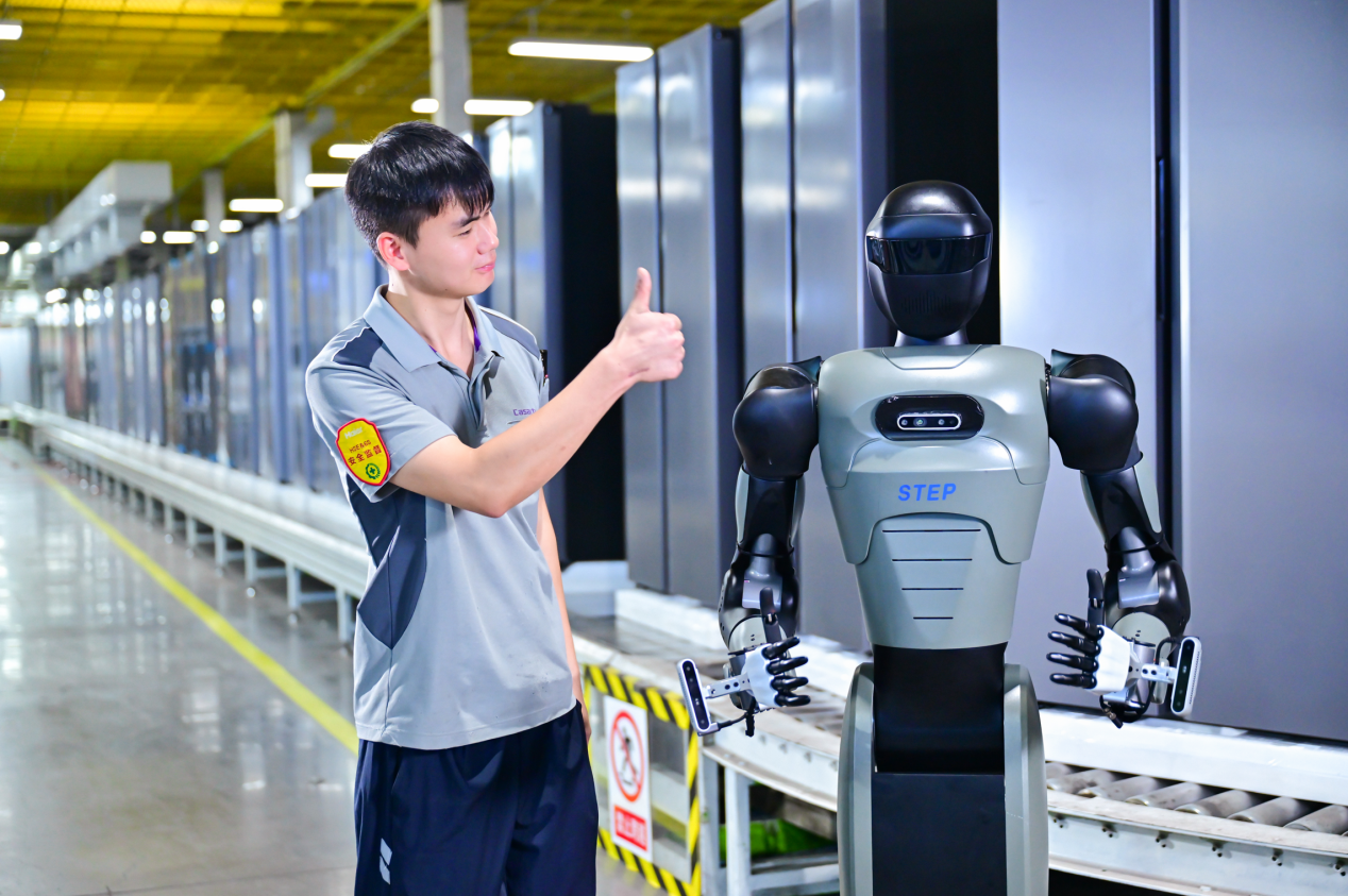 人形機器人不僅能跳舞、打拳,還能進廠干活,成為未來生產力。近日,位于重慶的海爾冰箱互聯工廠就引入了新時達人形機器人—新達。它不僅能給冰箱門軸刷潤滑油,還能做更復雜的物料搬運和智能巡檢。