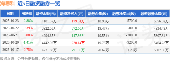 證券之星消息,截至2025年10月23日收盤,海思科(002653)報(bào)收于50.5元,下跌2.88%,換手率0.66%,成交量3.17萬手,成交額1.6億元。