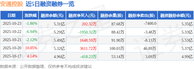 證券之星消息,截至2025年10月23日收盤(pán),安通控股(600179)報(bào)收于4.21元,下跌1.86%,換手率2.65%,成交量99.4萬(wàn)手,成交額4.2億元。
