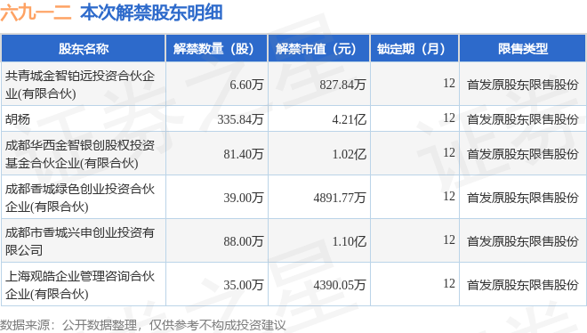 六九一二(301592)585.84萬(wàn)股限售股將于10月24日解禁,占總股本8.37%
