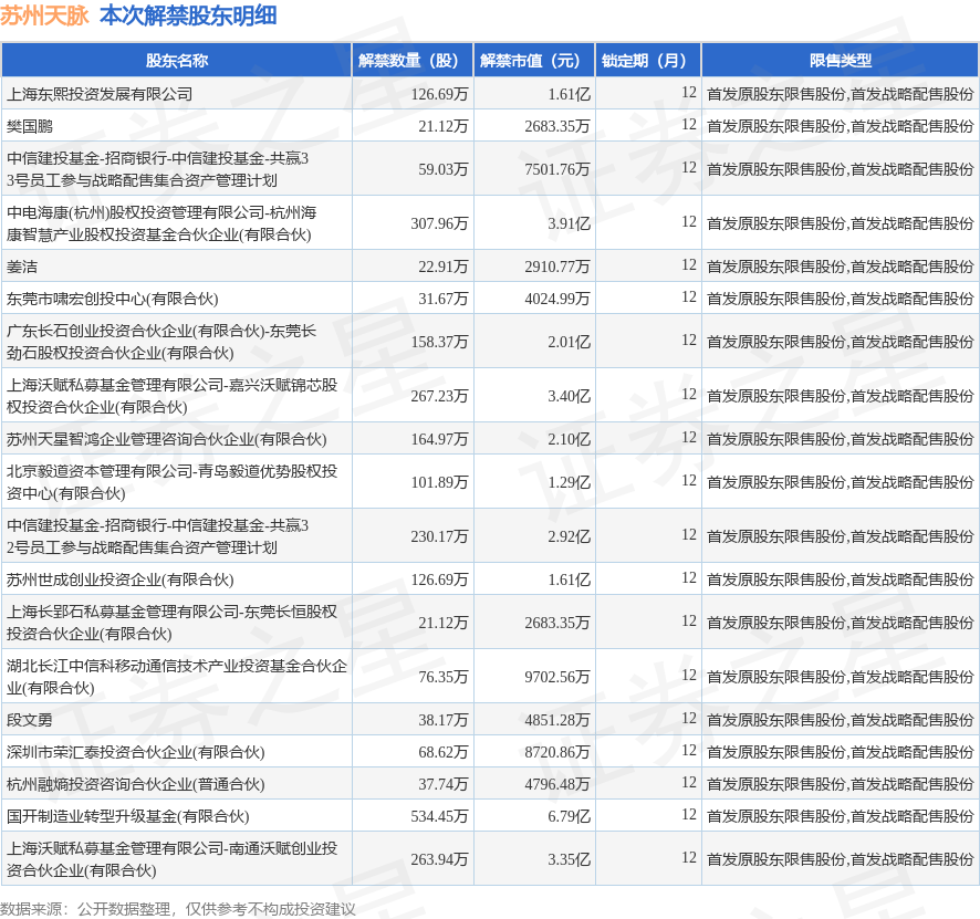 本次解禁涉及股東明細(xì)見下表: