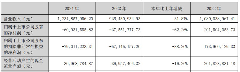 2023年、2024年,公司實(shí)現(xiàn)歸屬于上市公司股東的凈利潤(rùn)分別為-6093.16萬(wàn)元、-3755.18萬(wàn)元。