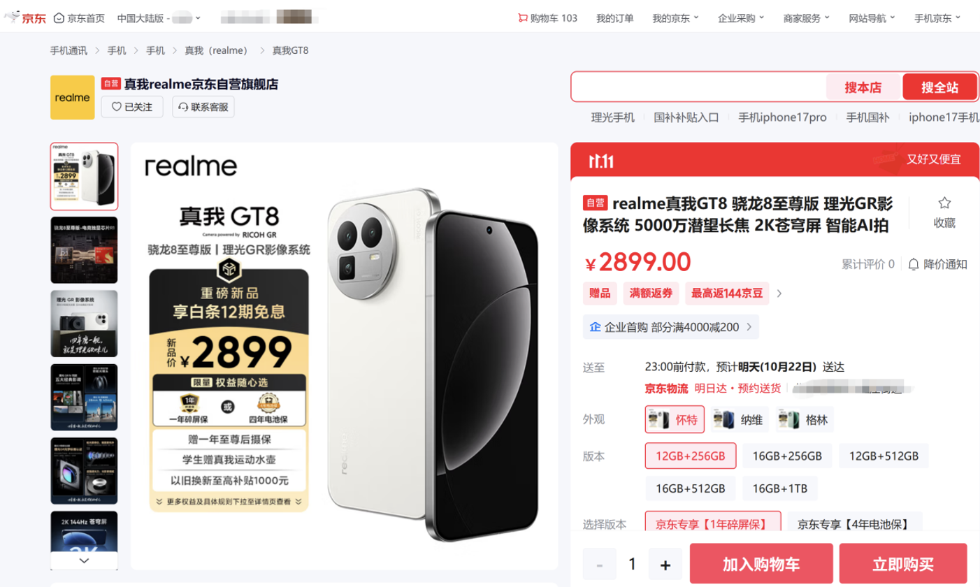 來京東11.11先人一步下單真我GT8系列 贈1年至尊后攝保