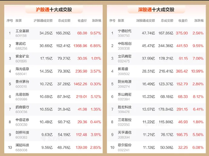 4、北向資金共成交2468.66億元,占兩市總成交額的13.17%——