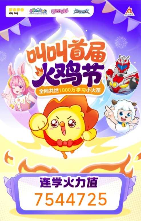 “奶龍‘永遠用微笑面對困難’的人設(shè),與我們鼓勵孩子‘堅持學(xué)習(xí)不放棄’的理念高度契合。”叫叫相關(guān)負(fù)責(zé)人表示。除奶龍外,本屆“火”雞節(jié)叫叫還邀請到喜羊羊、鎧甲勇士、巴啦啦小魔仙、超級飛俠等國民IP加盟,希望通過孩子熟悉的動漫角色建立情感連接,讓學(xué)習(xí)從單向任務(wù)變成有陪伴、有互動的驚喜之旅。