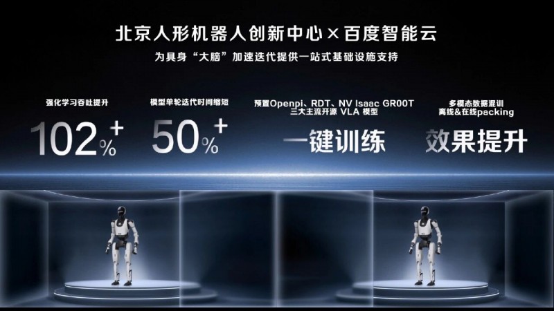 在具身智能行業(yè),北京人形機(jī)器人創(chuàng)新中心近期發(fā)布的具身世界模型和跨本體 VLA 模型等前沿成果,其底層基礎(chǔ)設(shè)施正是由百舸提供支撐,幫助其研發(fā)效率提升了 2 倍。
