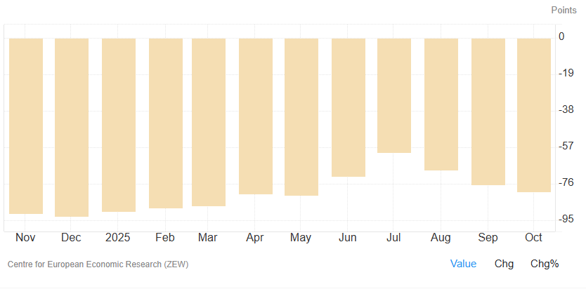 的德國ZEW調(diào)查顯示,經(jīng)濟現(xiàn)況指數(shù)已跌至-80.0的深淵 ,這表明經(jīng)濟正承受著巨大的壓力。歐洲央行被迫優(yōu)先對抗棘手的服務(wù)業(yè)通脹,即使這意味著要給德國乃至整個歐元區(qū)的經(jīng)濟帶來更多痛苦。這就造成了一種危險的政策與經(jīng)濟的背離:貨幣政策在收緊(或維持緊縮),而經(jīng)濟卻在呼喚刺激。
