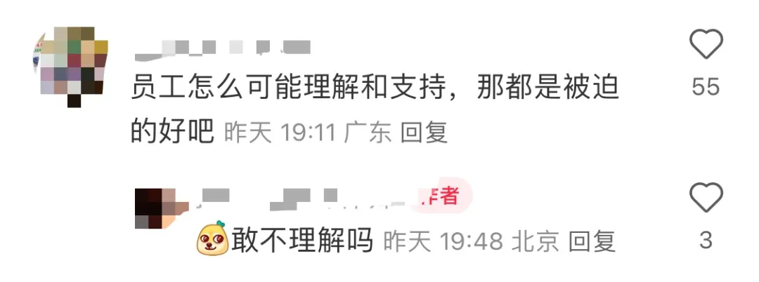 但有基層員工匿名表示:“大家嘴上不說(shuō),但私下都在討論。過(guò)節(jié)費(fèi)本來(lái)就不多,現(xiàn)在要退回三年前的,誰(shuí)心里會(huì)舒服?”也有網(wǎng)友在社交平臺(tái)評(píng)論:“員工怎么可能理解和支持,那都是被迫的好吧”。